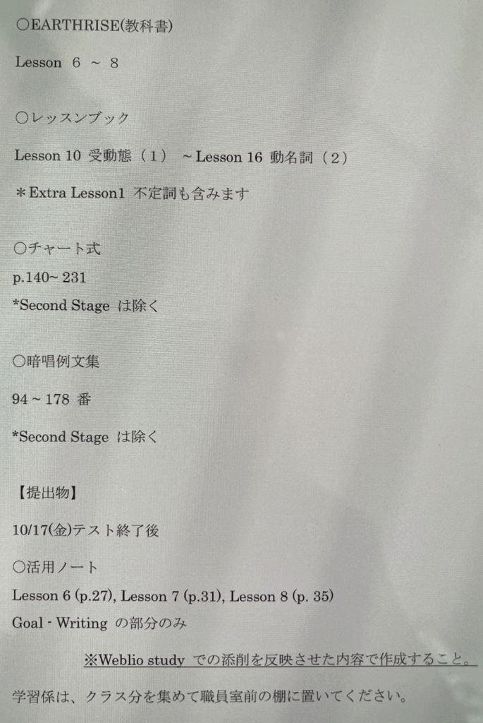 10月テストが近づいています。