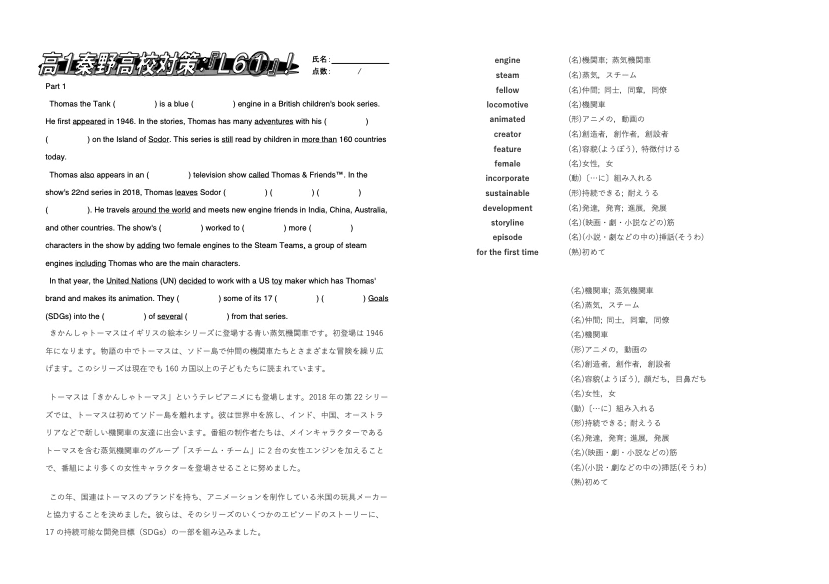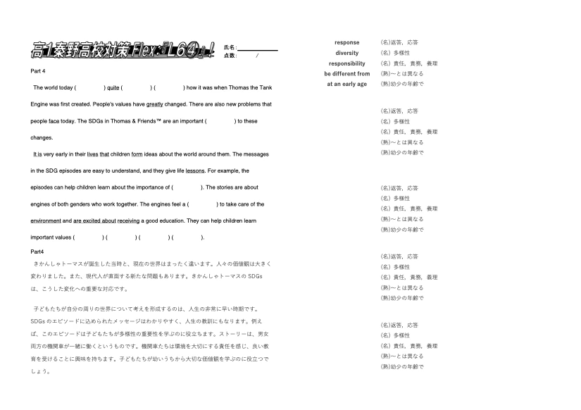 【秦野英語塾】秦野高校1年 コミュニケーション英語 Lesson5(後半)!