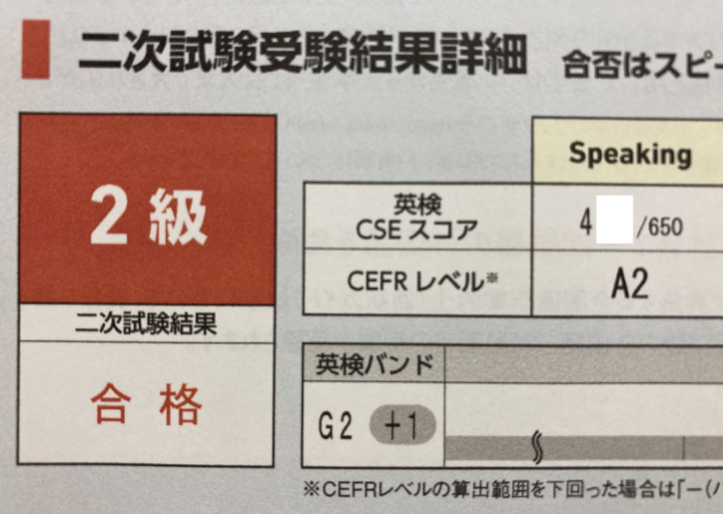 英検2級の一次試験を突破し、