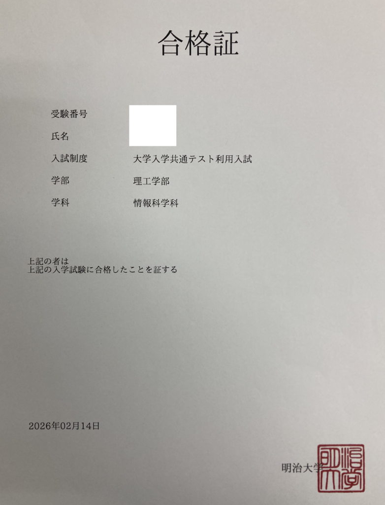 共通テスト利用入試合格!