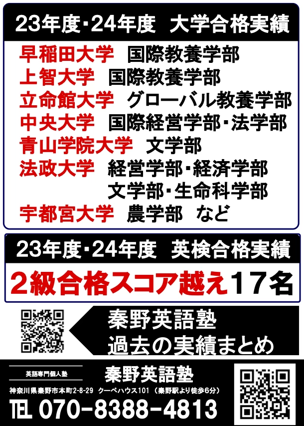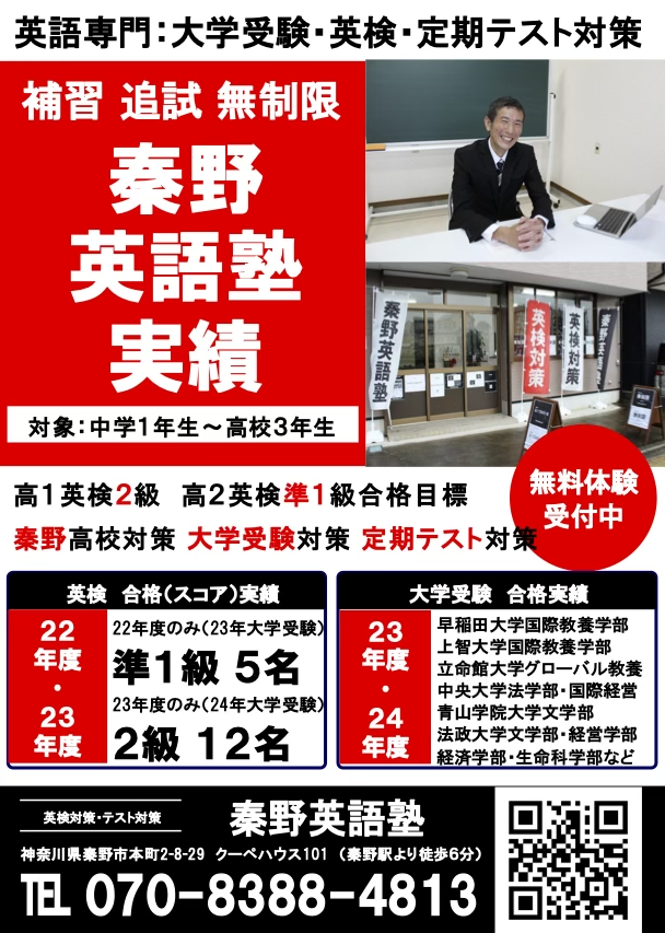 秦野英語塾 勉強量が全て 高2で英検準1級