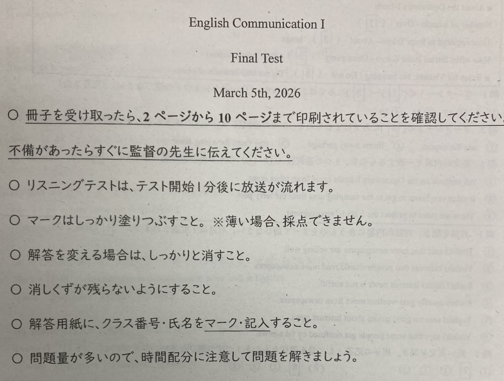 2年生最初のテストで
